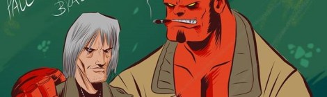 Salomão Ventura, caçador de lendas brasileiras, encontra Hellboy. Arte do quadrinista Giorgio Galli Neto